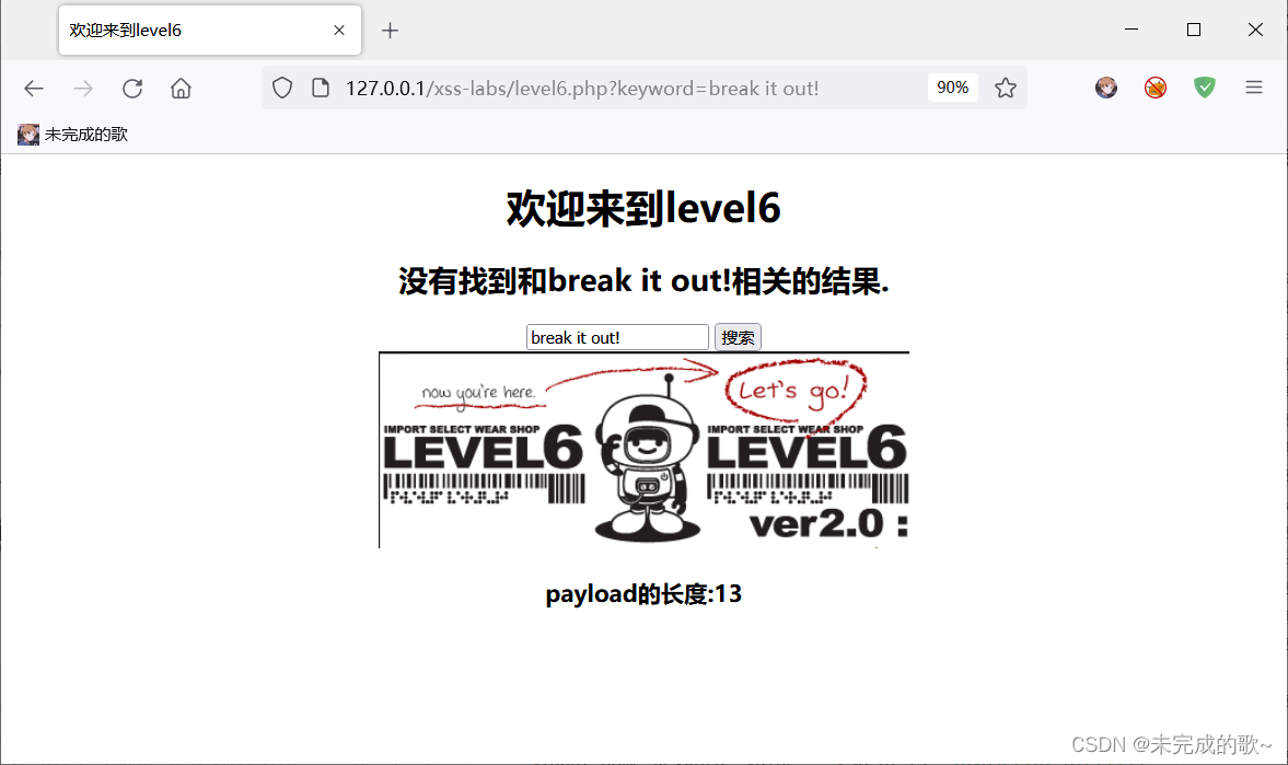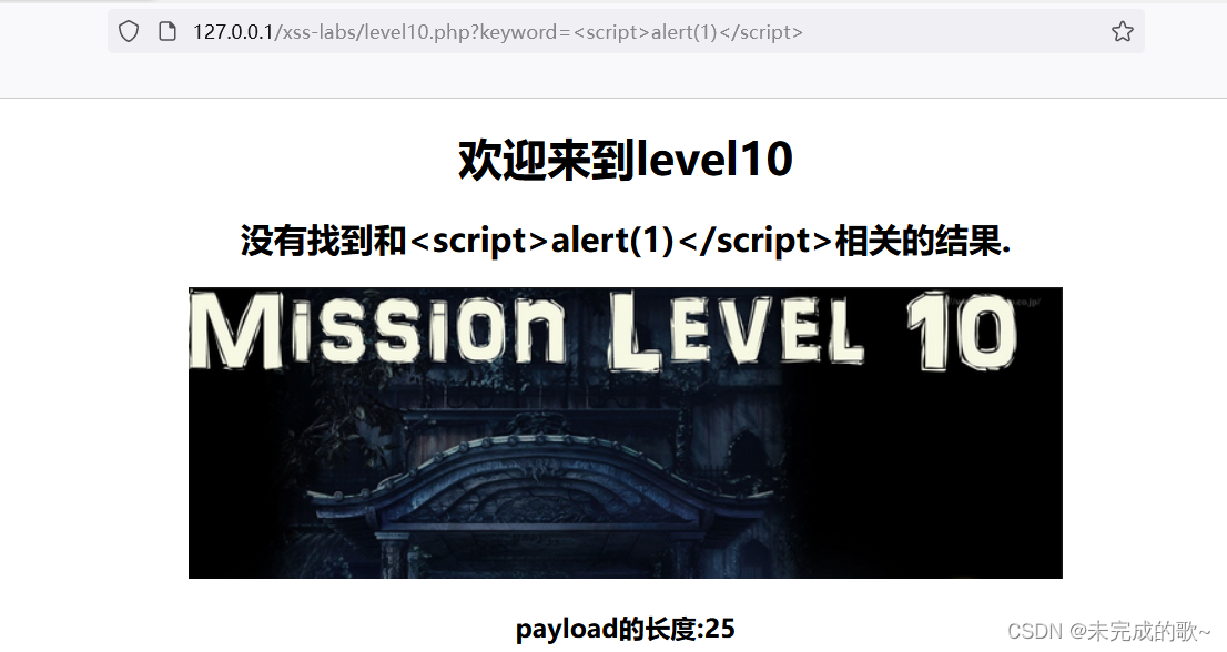 发现页面有所变化,在 “欢迎用户” 后有一个显示位能对传入的参数进行输出,在下方payload长度处也有字符串长度的统计,尝试构造脚本 <script>alert(1)</script>